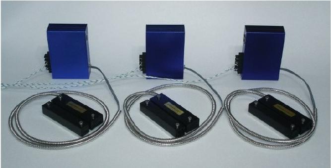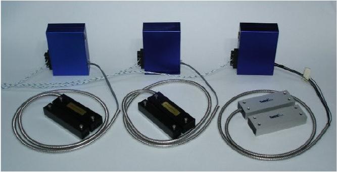 Three switches, two of the 3D Magnetometer type and one from an existing system, connected to a conventional wired system. Remote test terminals are available on the barrier strip.